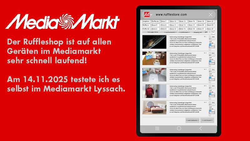 A Ruffleshop (available for order at www.langenthal.eu or www.rufflestore.com) costs just CHF 375 per year from a competitor of the hosting companies. Once paid, the Ruffleshop costs nothing. There are no subscriptions or follow-up costs. There are also no updates or upgrades. The fast-delivering Ruffleshop is currently available in five light colors, which fit 1:1 the generation 11 iPad and iPhone17. Light colors are easier to read. Black text is easy to read on a light background. One color is necessary because the computer white has to be broken down to prevent eye damage. If you don't want a color, you can also choose light gray. The computer font was chosen as Segeo because it supports all languages worldwide. This allows the Ruffleshop to be offered in all desired currencies. The double order button allows two shopping cart entries to be submitted simultaneously. The encrypted send button and the email button. The encrypted send button sends the shopping cart, beautifully formatted and complete with hundreds of items, back through the GPU, directly through any firewall, and back to the hosting in an encrypted channel into a secret, encrypted PHP script. In the five colors offered, an affordable Ruffleshop can be delivered quickly worldwide. Simply provide us with your URL. Then we send you a ZIP file. In the first kernel, 9 menus, each containing 250 shop items, are entered directly in the root directory in a text file (menus programmable by the customer themselves). The second kernel is the same website but with 24 menus, which can also be labeled by you in text files in the root directory. The first kernel allows access to 3000 items, and the second adds another 3000 items, bringing the total to up to 6000 items. The Ruffleshop is also ideal for a small number of items. You simply leave the other menus empty. Or you can distribute the items across several menus, with five items per menu. The HTML version can then be selected afterwards if the processor is not fast enough. These are Android devices that are older and were produced more than 6 years ago. This Ruffleshop was initially designed for the Swiss PostFinance credit system. However, we decided against connecting to a credit card, as our customers are very small private customers who can then email the customer themselves after placing their shopping cart orders, asking where to pay. Or, in the autoresponder of the secret PHP script, bank details can be sent to the customer, telling them where to pay. This happens automatically. The IT specialist can also program the credit card provider into the system. Read more / Device manufacturer guarantee: click here Andreas Lützenberger |